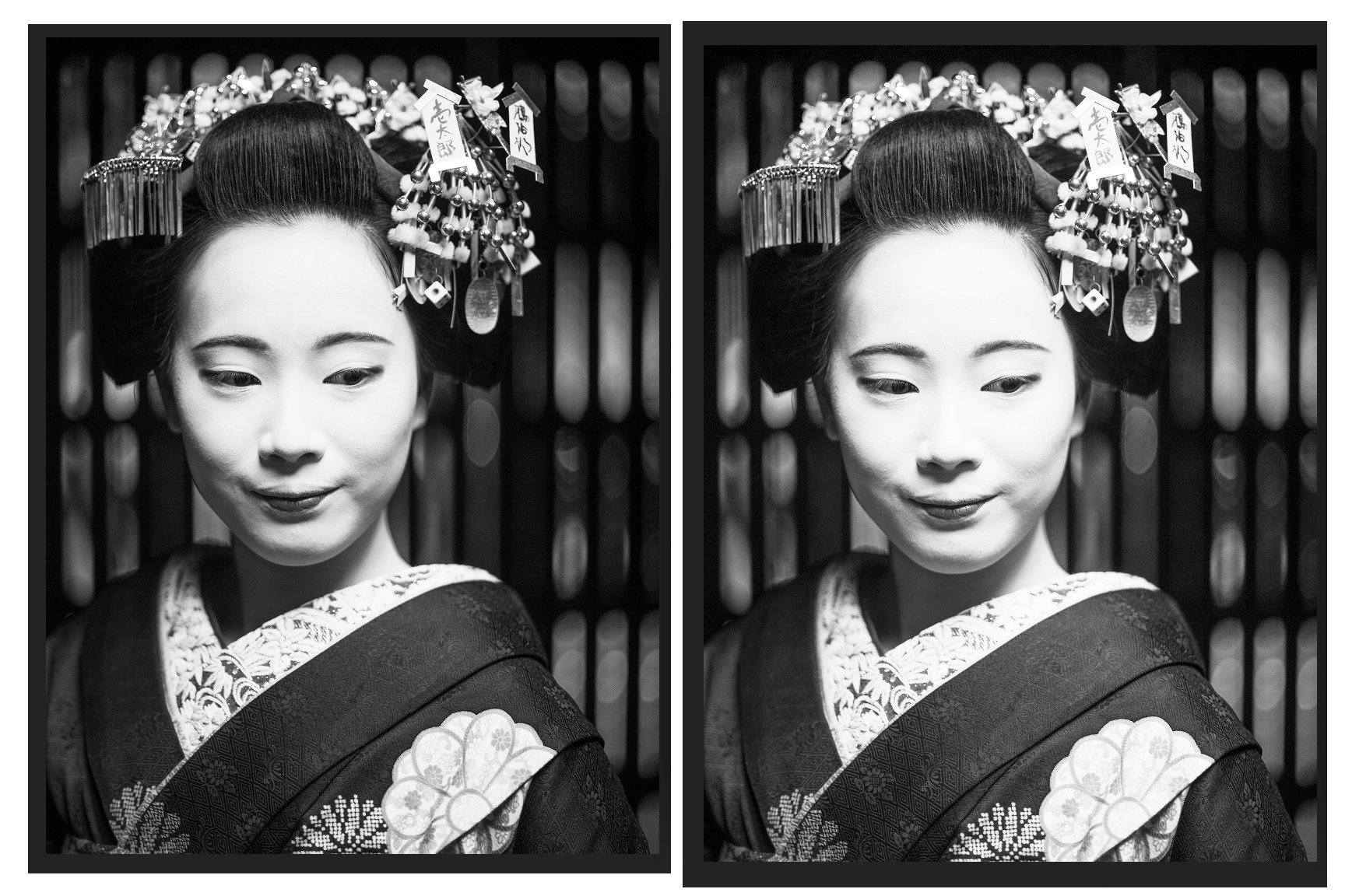 On the left: image before the 15% dot gain curve is applied, on the right: image after the curve is applied.