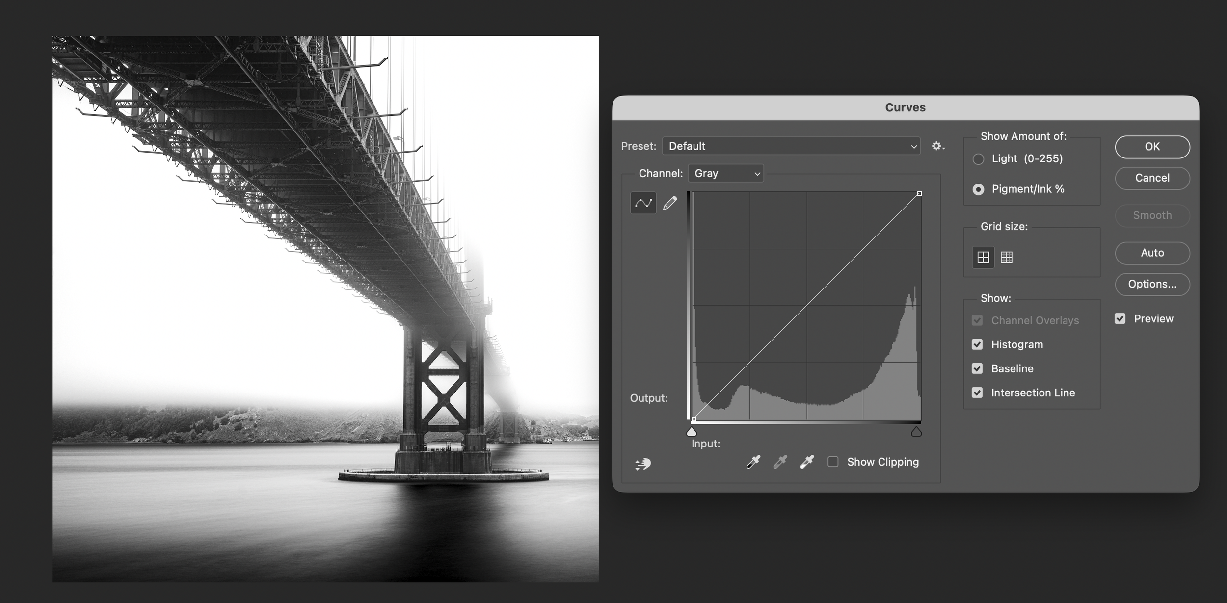Again, your printer will give you specific settings for both the highlight and the shadow compensation curves. For Marine Layer, I was told to create a 5% cut of highlights and a 2% cut (so, 98% remains) of shadows.